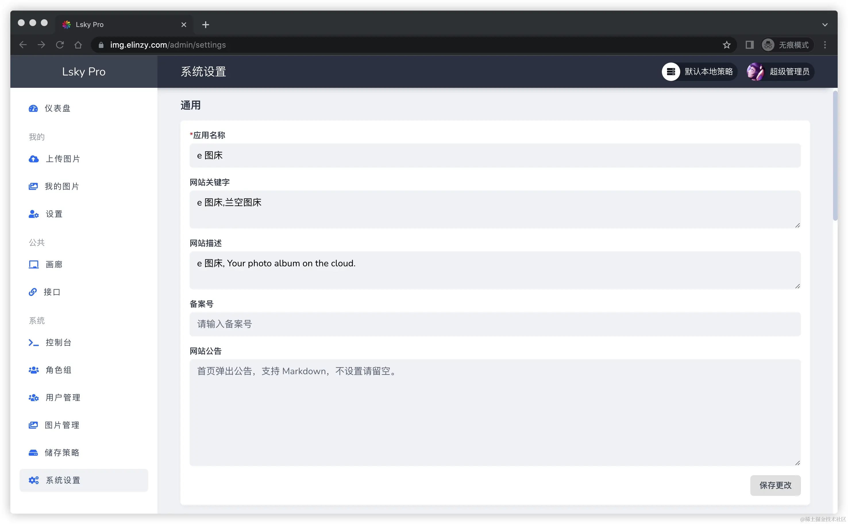 Lsky Pro 是一个用于在线上传、管理图片的图床程序,中文名:兰空图床,你可以将它作为自己的云上相册,亦可以当作你的写作贴图库。
