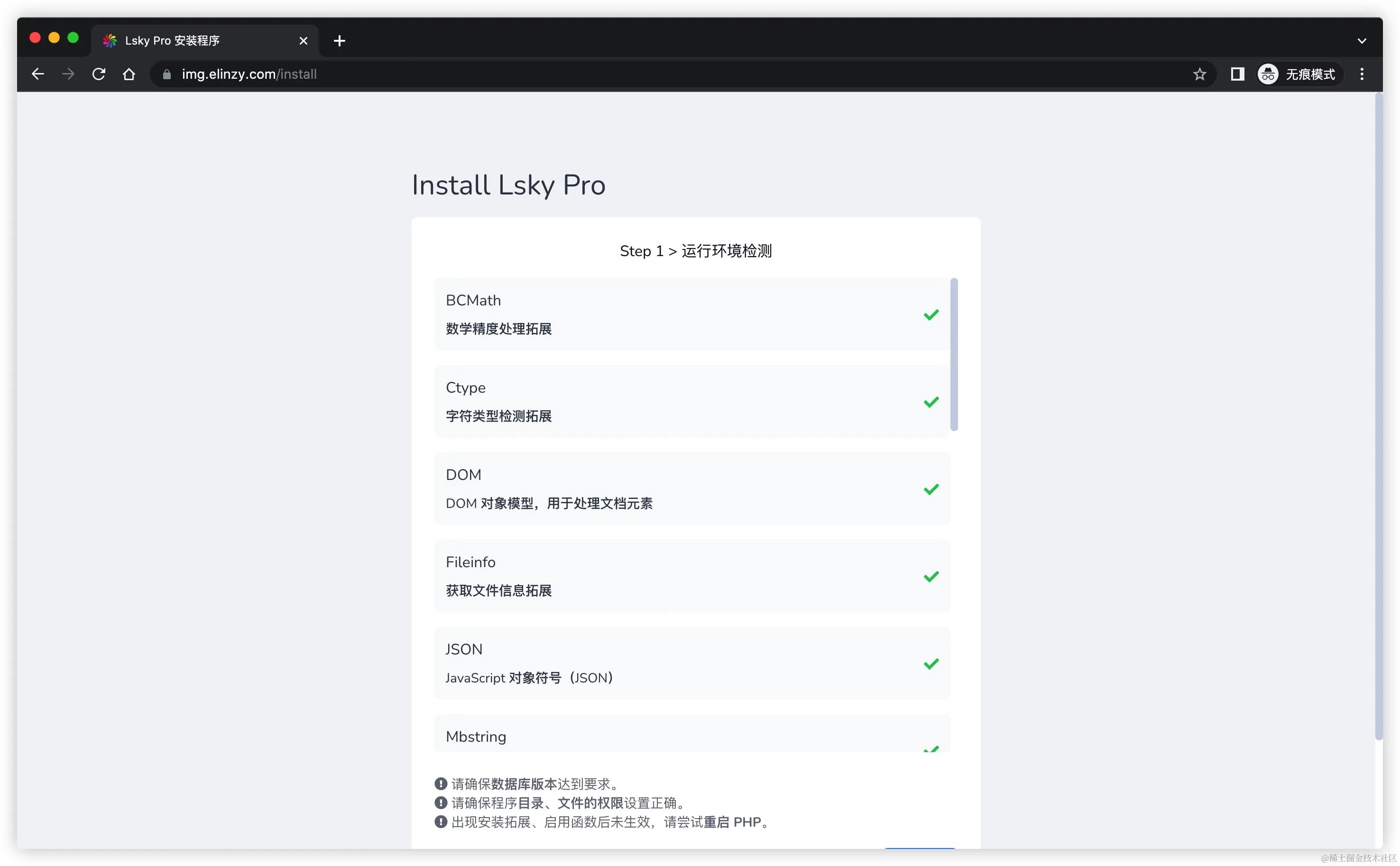 访问网页地址,进入安装界面,按照提示进行安装即可