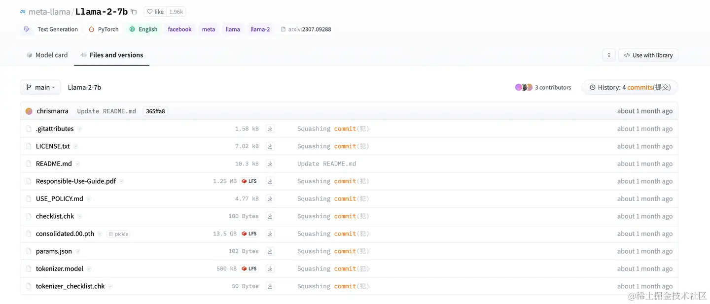 注:hugging face下载模型的前提也是在Meta官网提交了申请,并且注意hugging face账号的邮箱需要与在官网申请时候填写的邮箱一致