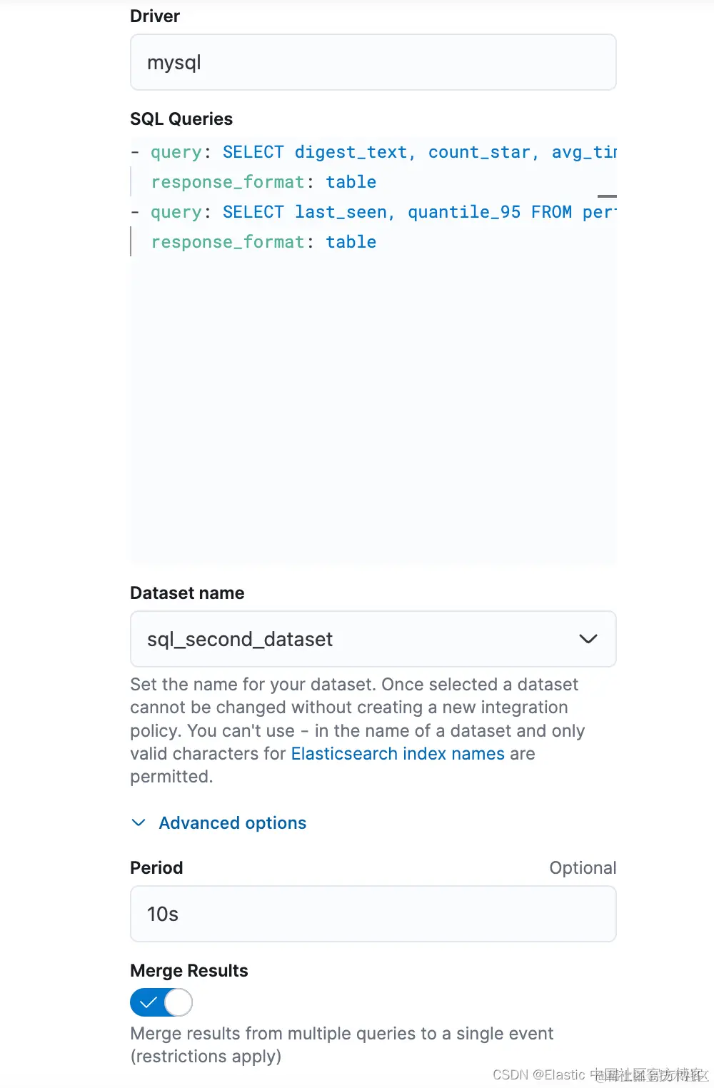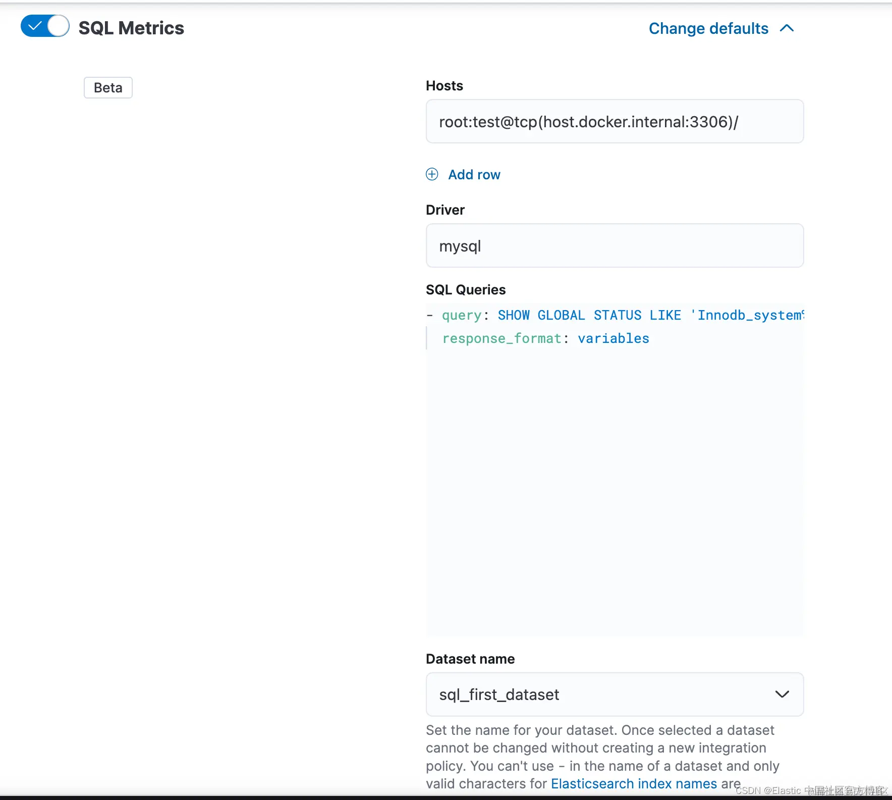 通用 SQL metricbeat 模块提供了针对不同数据库驱动程序执行查询的灵活性。 metricbeat 输入可作为任何生产用途的 GA。 在这里,你可以找到有关为不同驱动程序配置通用 SQL的更多信息以及各种示例。