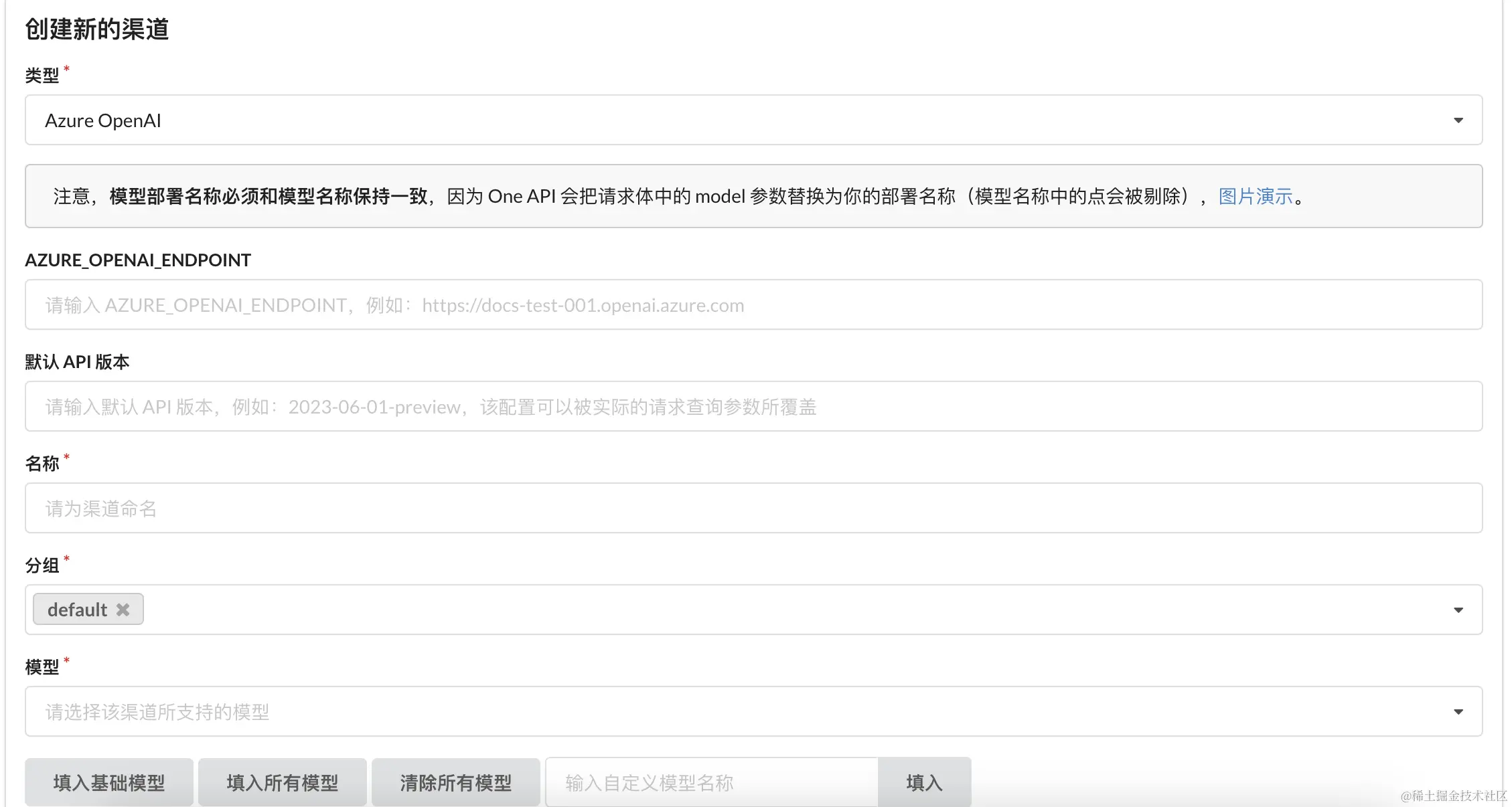 因此笔者目前也推荐大家在国内使用Azure的OpenAI进行项目开发以及研究,下面简单描述下如何使用One-API集成Azure的能力。