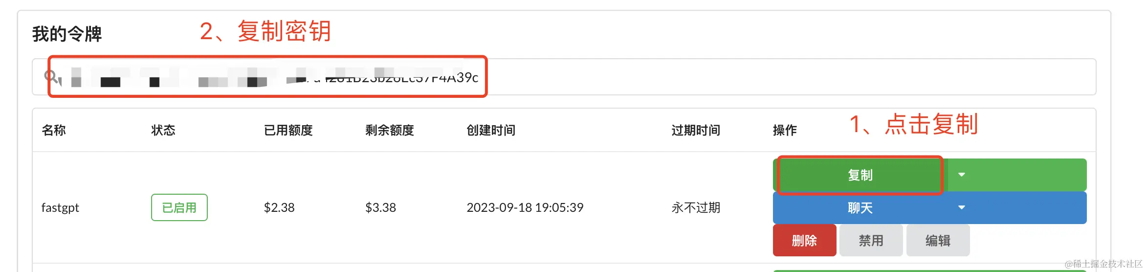 在渠道页面中添加 API Key,并在令牌页面中新增访问令牌。