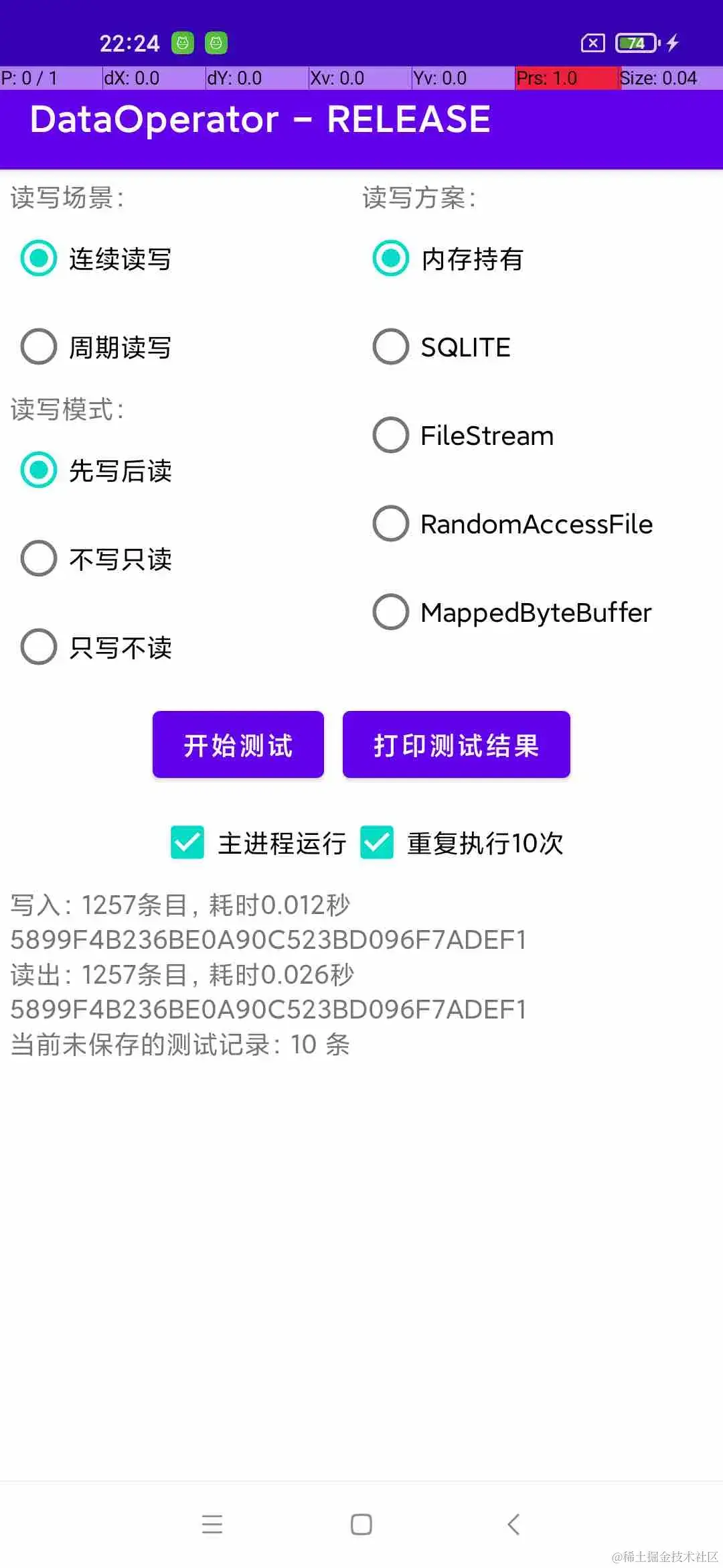 为方便自动化测试和避免手动操作引入的干扰因素,在程序内支持按相同参数连续执行10次测试。