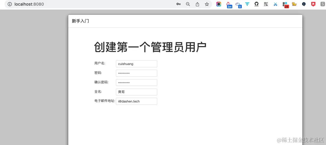 创建第一个管理员用户