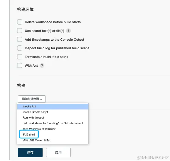 增加构建步骤选择执行Shell