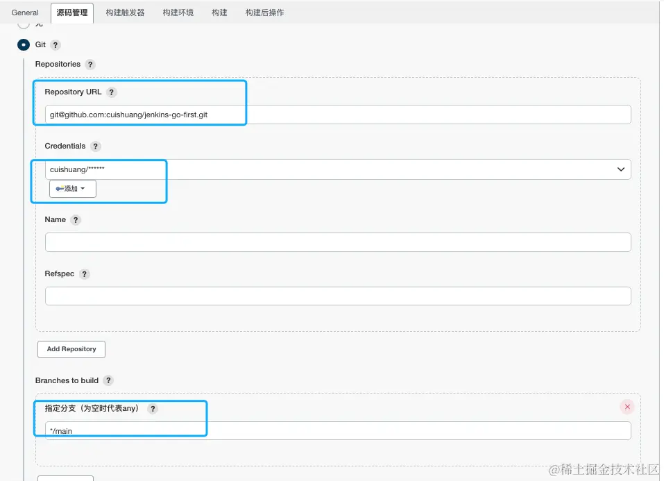 指定要构建的分支(看远程仓库的主分支是master还是main,或者可以选其他分支)