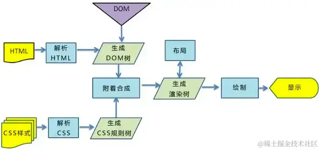 在构建 CSSOM 树时,会阻塞渲染,直至 CSSOM 树构建完成。并且构建 CSSOM 树是一个十分消耗性能的过程,所以应该尽量保证层级扁平,减少过度层叠,越是具体的 CSS 选择器,执行速度越慢。 当 HTML 解析到 script 标签时,会暂停构建 DOM,完成后才会从暂停的地方重新开始。也就是说,如果你想首屏渲染的越快,就越不应该在首屏就加载 JS 文件。并且 CSS 也会影响 JS 的执行,只有当解析完样式表才会执行 JS,所以也可以认为这种情况下,CSS 也会暂停构建 DOM。