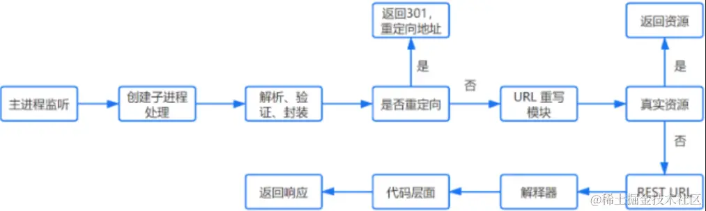 通常是Apache和Nginx服务器去处理请求,HTTP请求一般可以分为两类,静态资源 和 动态资源。