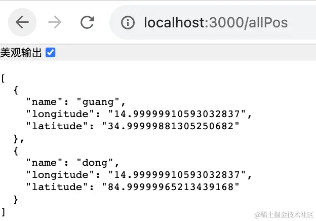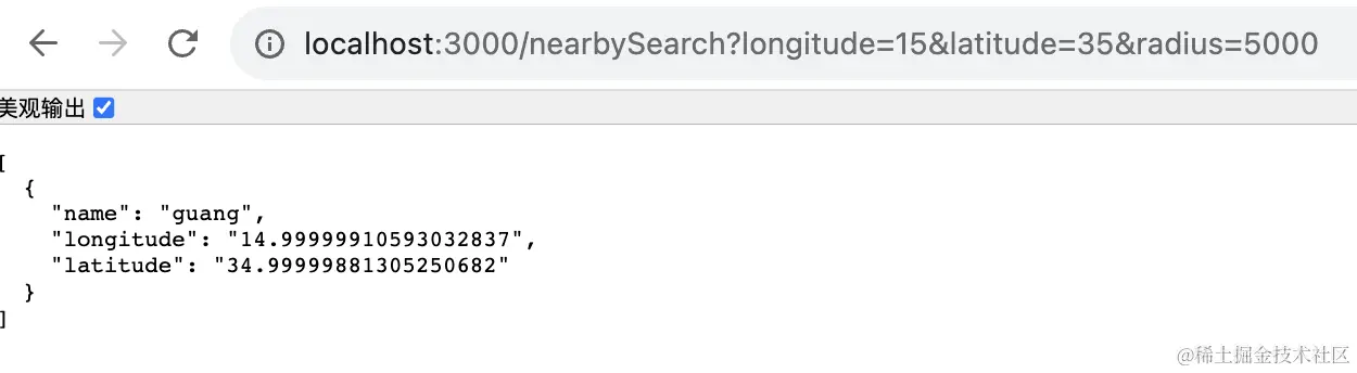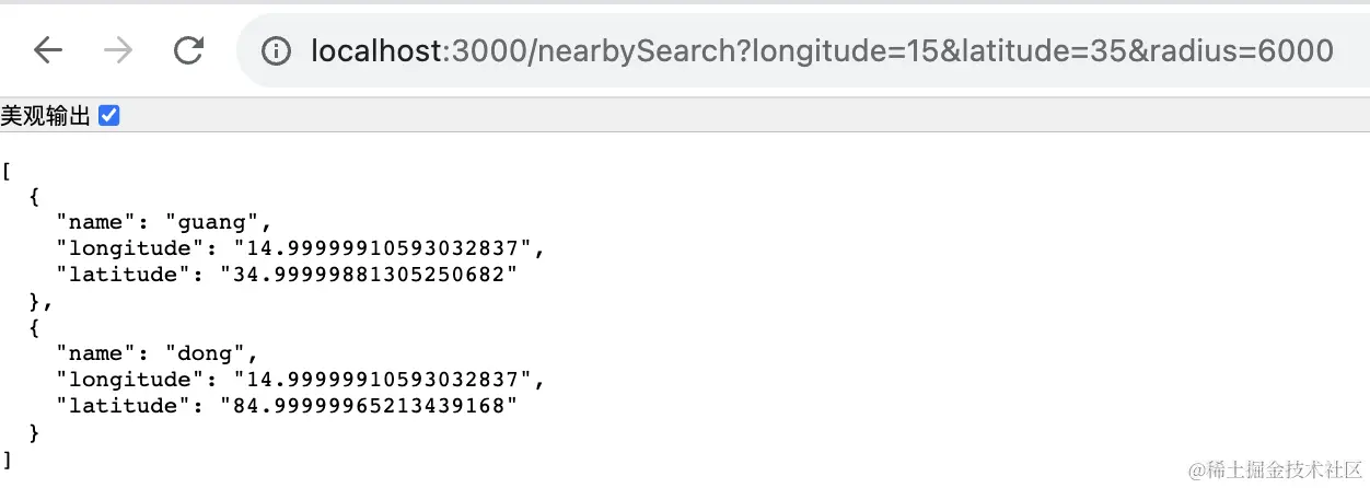 我们在 Nest 里封装了 geoadd、geopos、zrange、georadius 等 redis 命令。实现了添加点,搜索附近的点的功能。