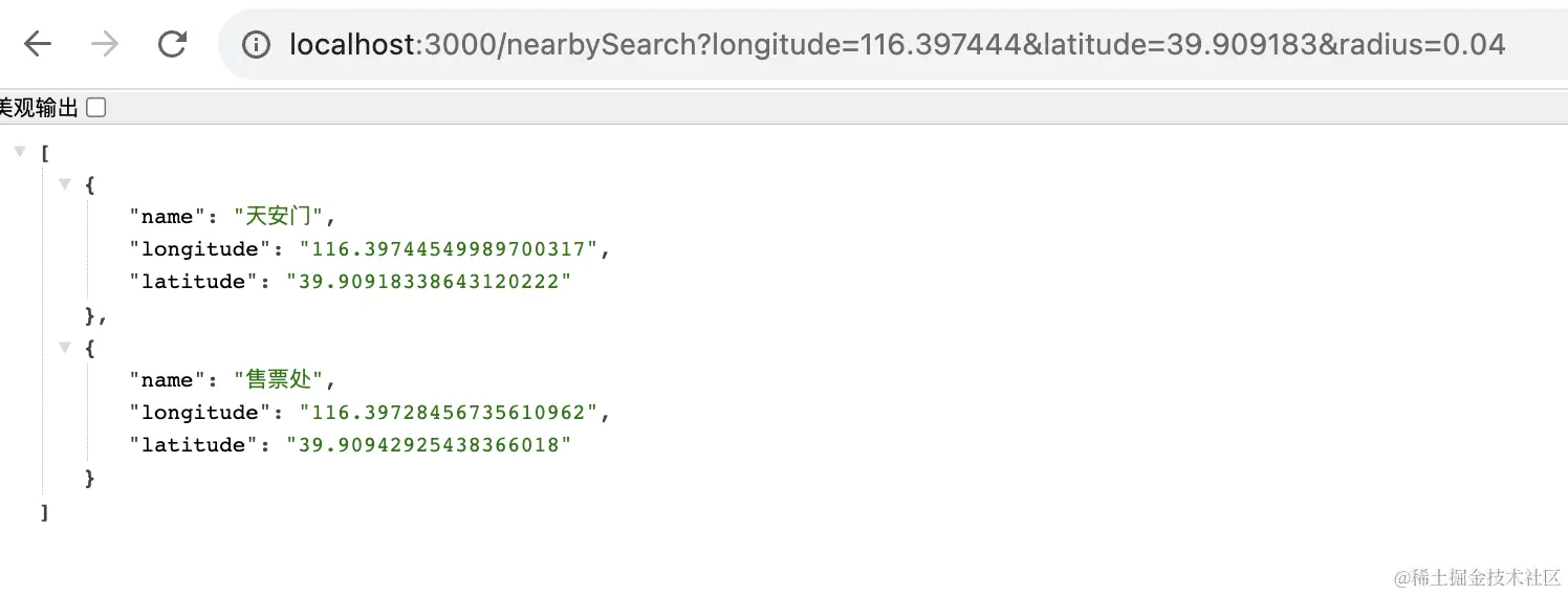/nearbySearch?longitude=116.397444&latitude=39.909183&radius=0.04