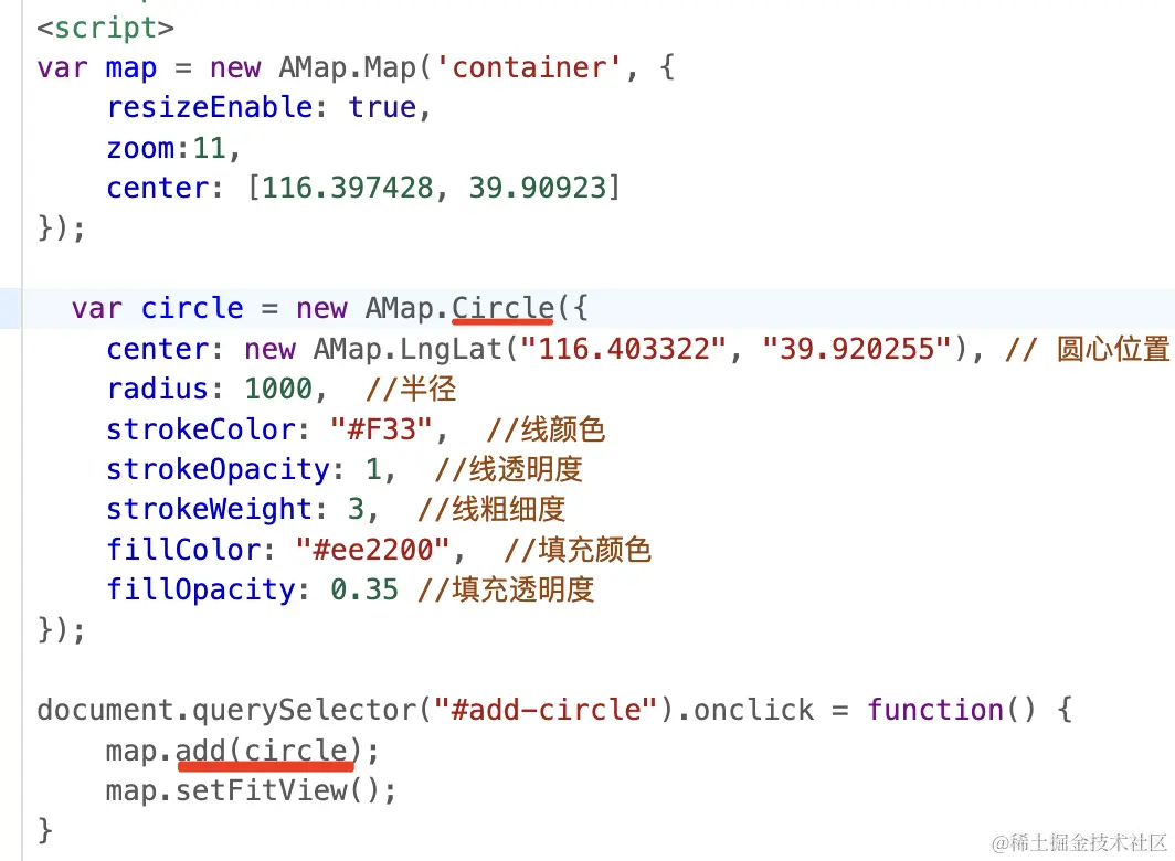 比如上面我们分别在地图上绘制了 marker 和 circle: