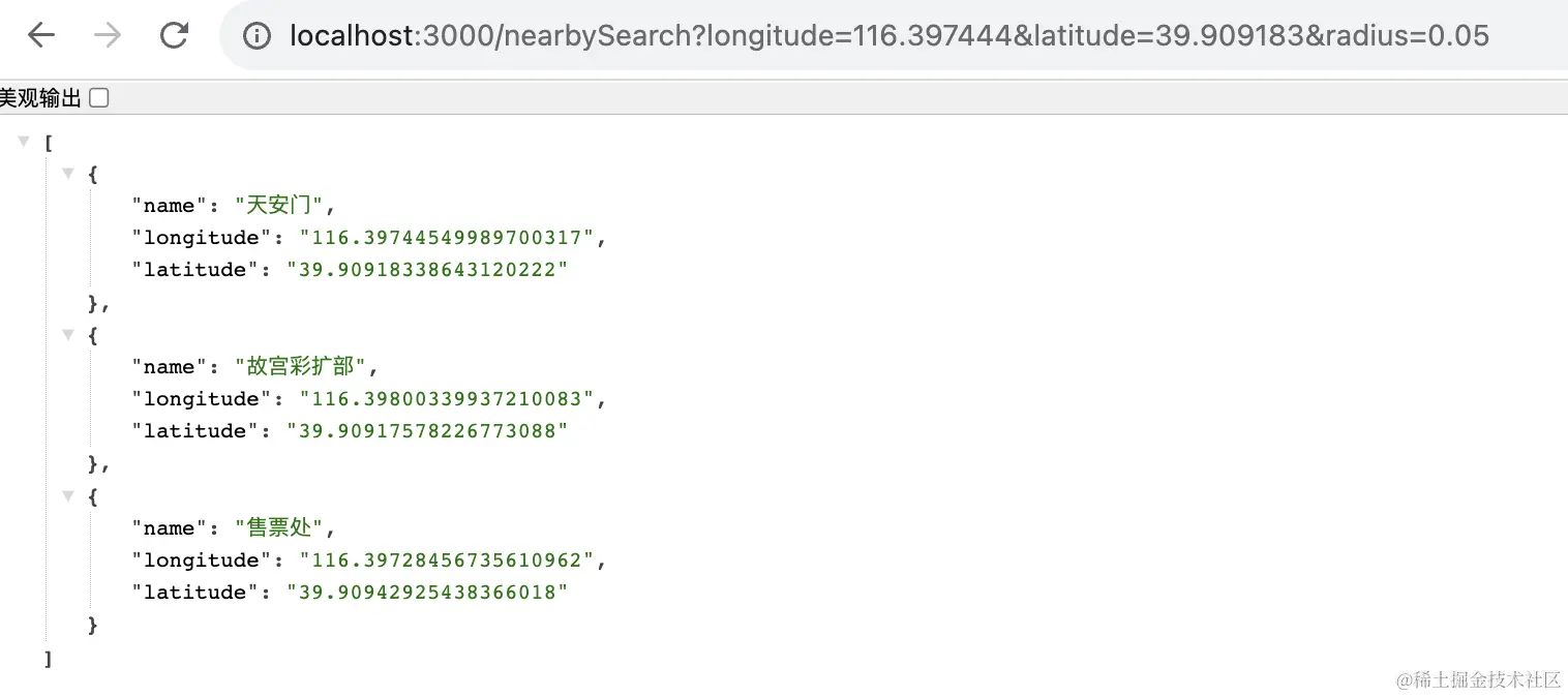/nearbySearch?longitude=116.397444&latitude=39.909183&radius=0.05