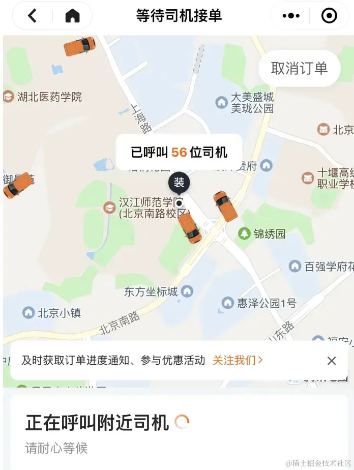 想必大家都打过车,打车软件可以根据你的当前位置搜索附近的车辆: