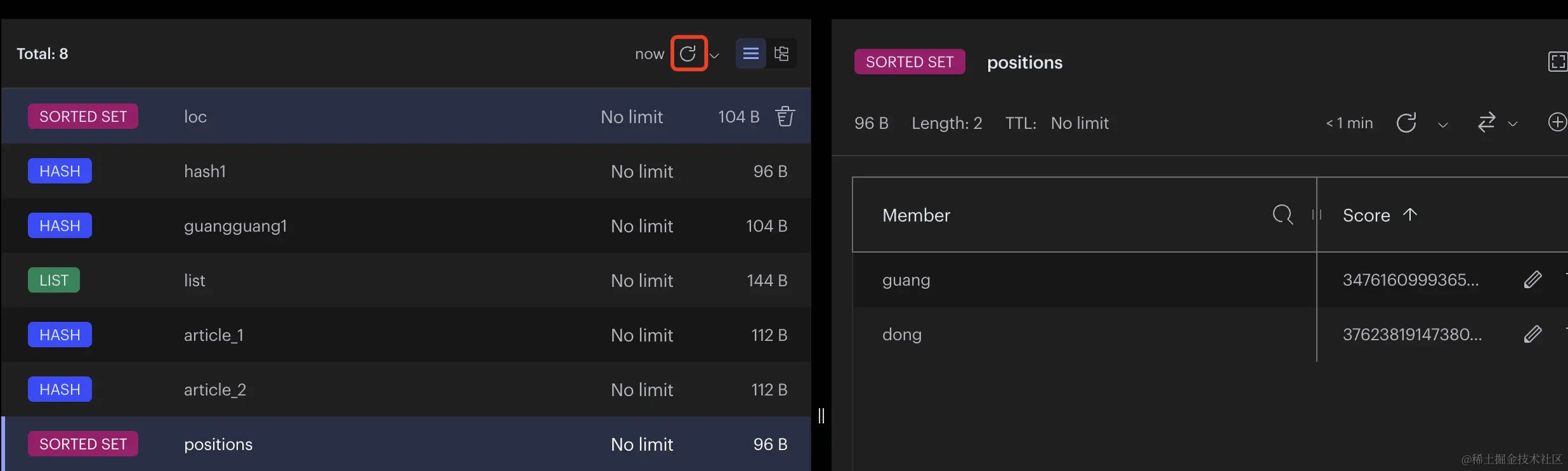- hash:存一个 map 的结构,比如文章的点赞数、收藏数、阅读量,就可以用 hash 存