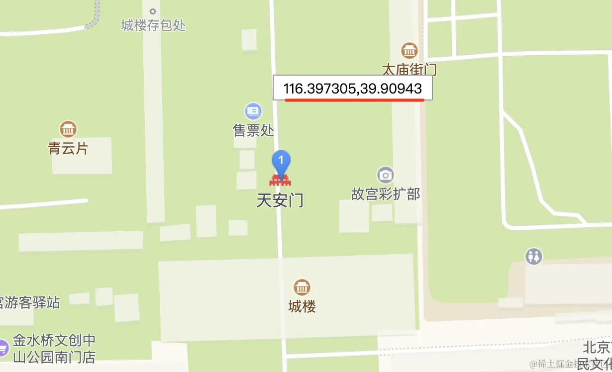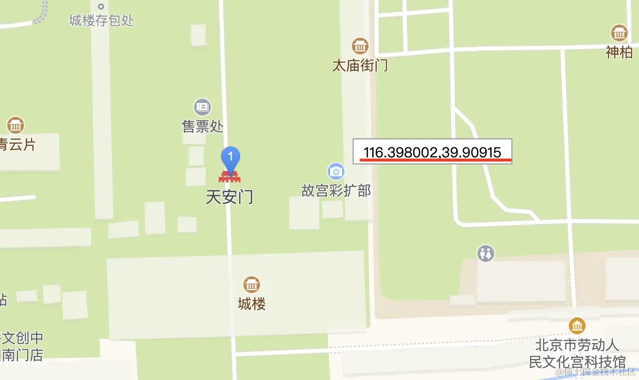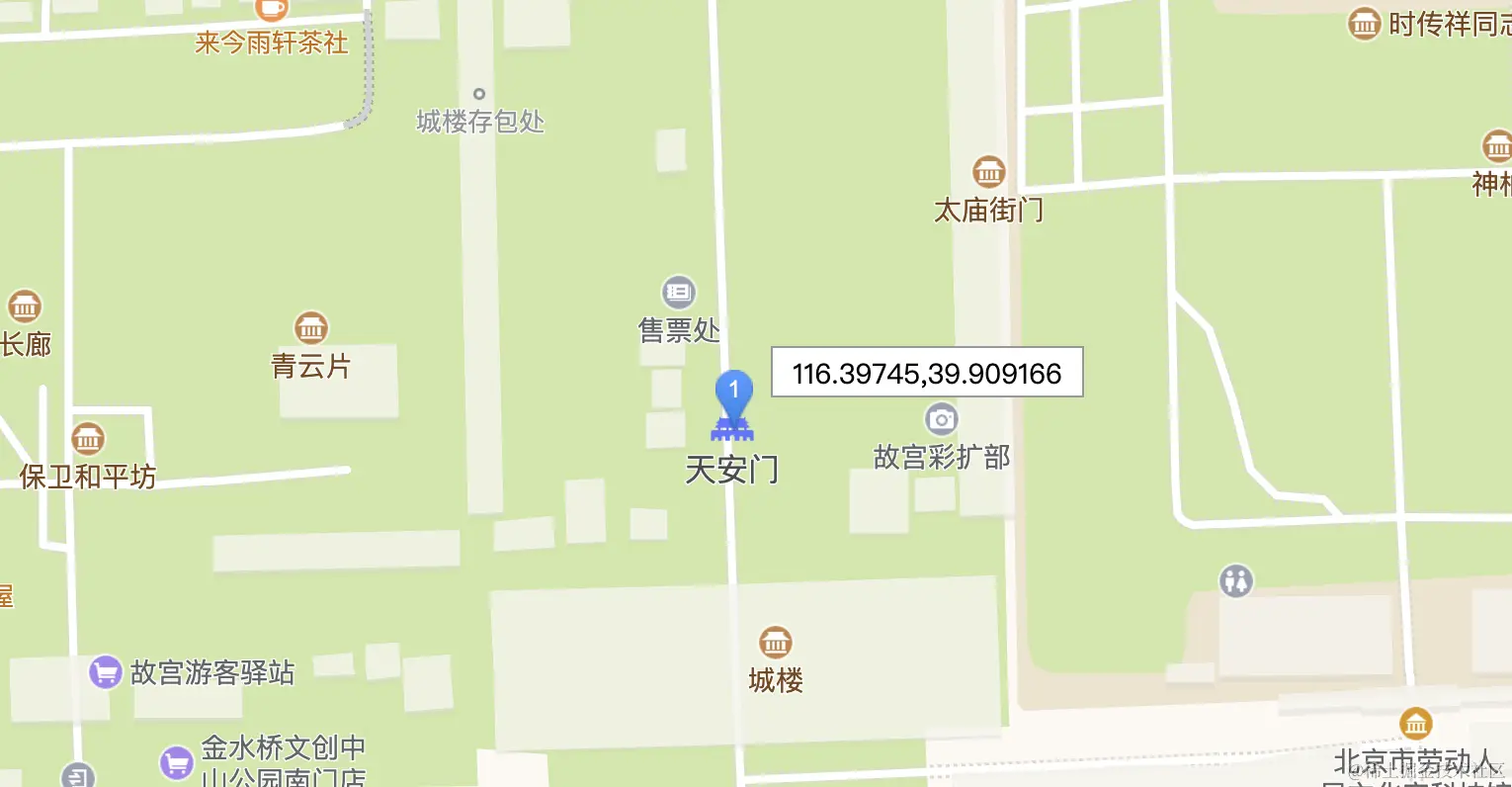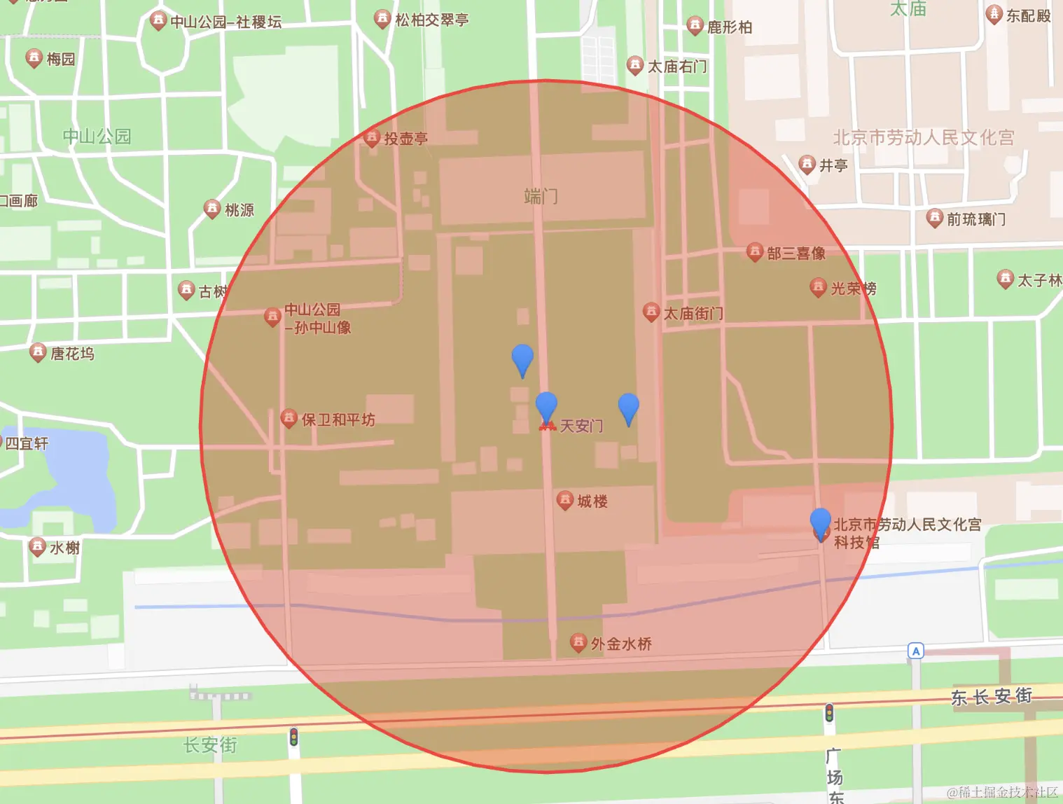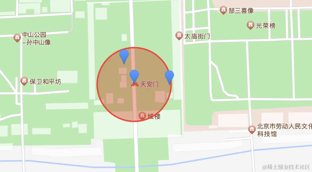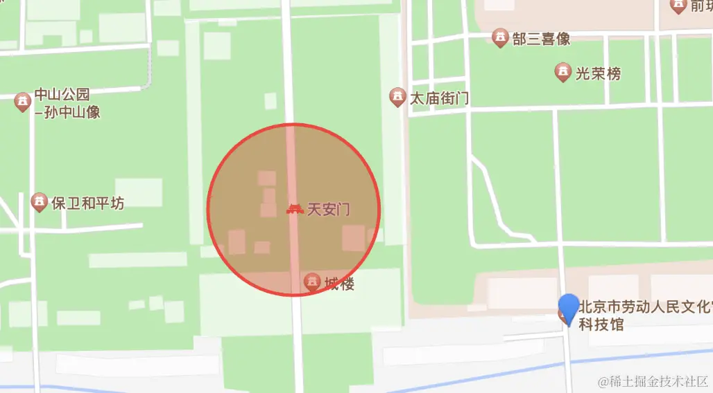在天安门画了一个 circle,然后在文化宫科技馆画了一个 marker: