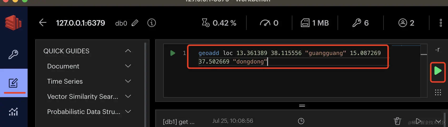 打开 RedisInsight,连接本地的刚才用 docker 跑的 redis server: