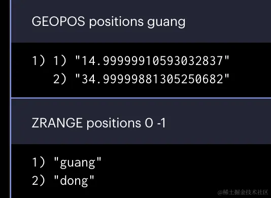 geoadd loc 13.361389 38.115556 "guangguang" 15.087269 37.502669 "dongdong"
