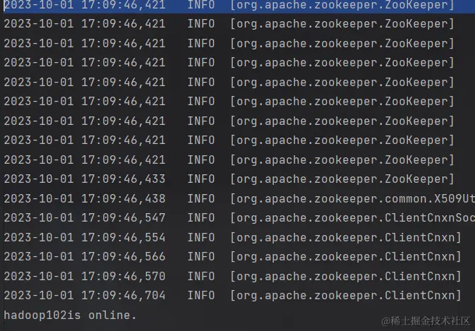 System.out.println("zookeeper 启动成功.");