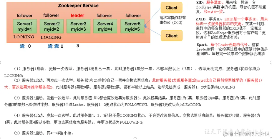 投票超过半数,服务器的 id 大的胜出