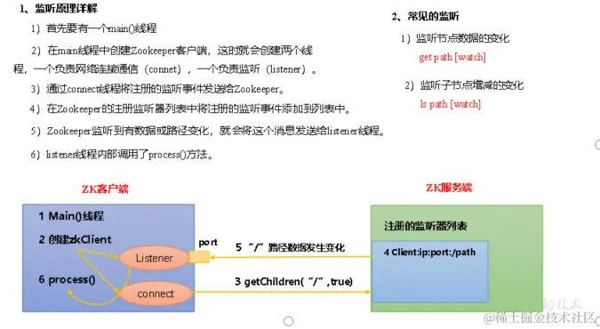 | get path | 获得节点的值[可监听]-w 监听节点内容变化-s 附加次级信息 |