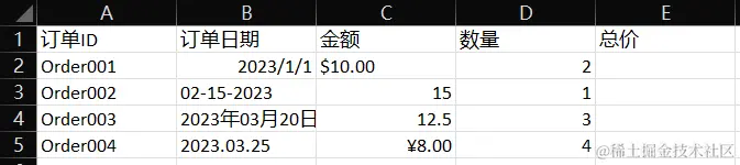 例如我们有一些日期数据,或者货币数据,在数据采集时数据格式不同,我们需要分别统一订单日期,金额的格式。