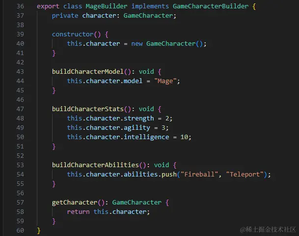 在此示例中,我们使用建造者模式创建了两种不同类型的游戏角色:战士和法师。不同类型的建造者负责构建不同的角色属性和能力,最后通过指导者获取最终的游戏角色对象并进行描述。这个例子演示了如何在游戏开发中使用建造者模式创建复杂的游戏对象。