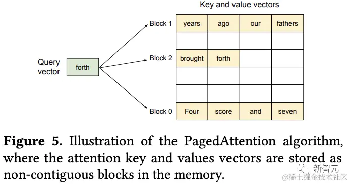 这种设计使得KV块存储在非连续物理内存中,从而让vLLM中的分页内存管理更加灵活。