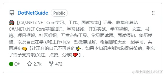 记录、收集和总结C#/.NET/.NET Core基础知识、学习路线、开发实战、学习视频、文章、书籍、项目框架、社区组织、开发必备工具、常见面试题、面试须知、简历模板、以及自己在学习和工作中的一些微薄见解。希望能和大家一起学习,共同进步👊【让现在的自己不再迷茫✨,如果本知识库能为您提供帮助,别忘了给予支持哦(关注、点赞、分享)💖】。