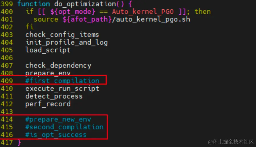 按照如下方式修改/A-FOT/a-fot 文件:对 409,以及 414-416 的函数进行注释