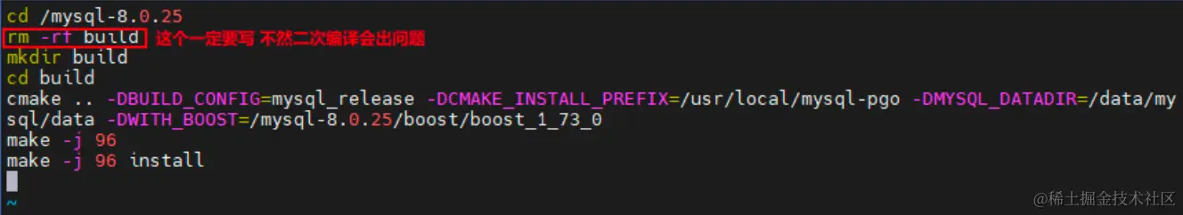 cd /mysql-8.0.25 rm -rf build mkdir build