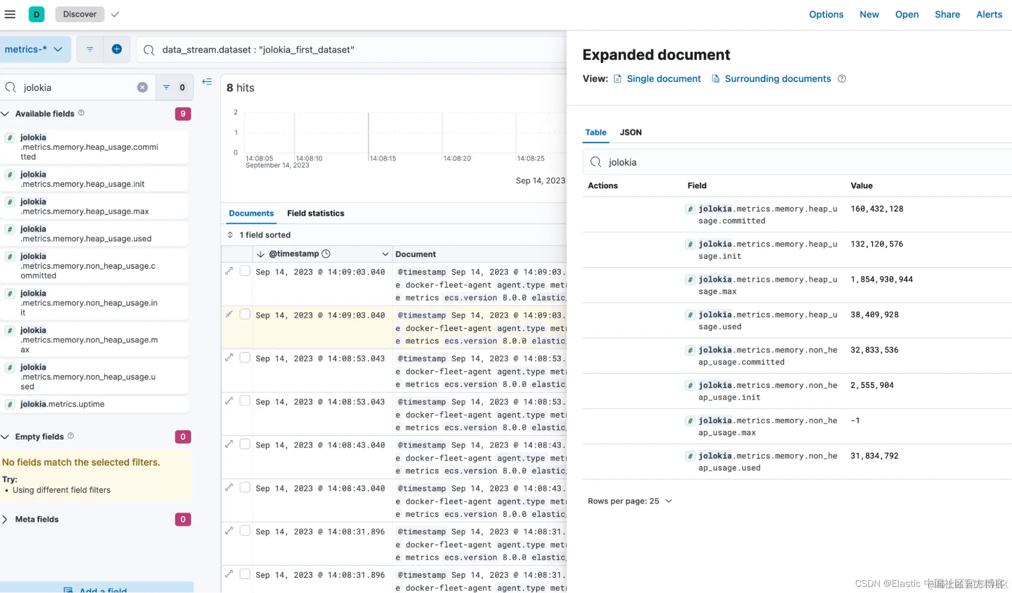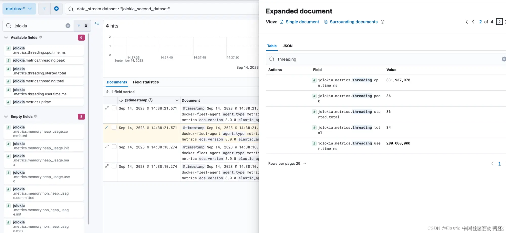 查询的结果指标将被索引到新数据集,即以下示例中的 jolokia_second_dataset。