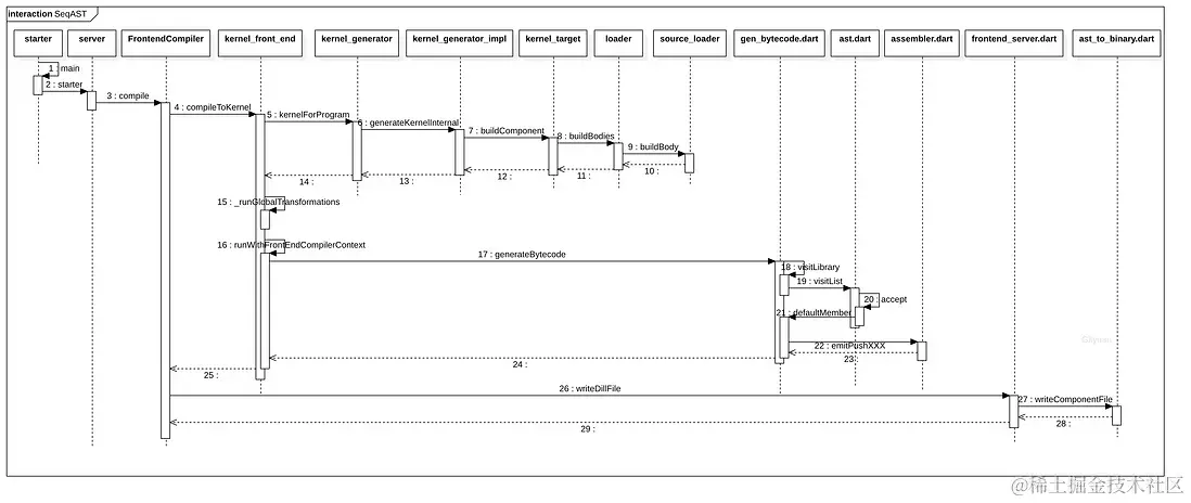 frontend_server 前端编译器将 dart 代码转换为 AST,并生成 app.dill 文件,其中 bytecode 生成过程默认是关闭的。