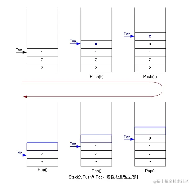 特点:后进先出即Last in First Out(LIFO)。