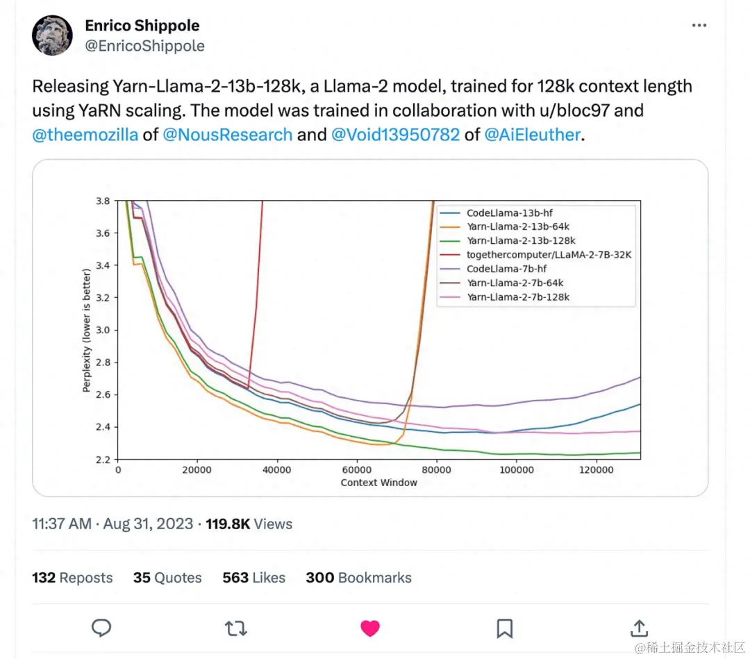 上周,另一个独立研究项目发布了 YaRN,将 Llama 2 的上下文长度扩展至 128k,而我甚至还没来得及体验 32k 的 GPT-4 ,这体现了开源模型迅猛的发展速度。