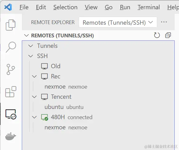 通过这样的配置,然后就可以方便地在 VS Code 中访问和管理多个服务器。只需单击服务器列表中的相应服务器,即可快速连接到目标服务器,并在远程环境中执行所需的操作。