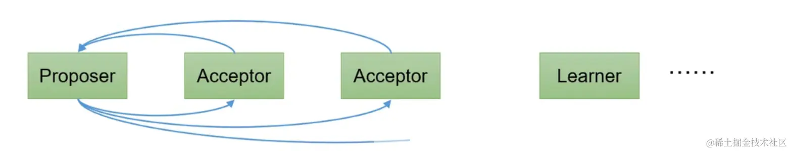 在一个 Paxos 系统中,首先将所有的节点划分成 Proposer (提议者),Acceptor(接受者),和 Learner(学习者) 。 (注意:每个节点都能身兼数职)。