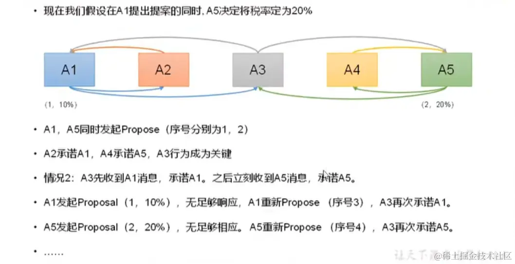 造成这种情况的原因在于系统中有一个以上的 Proposer,多个 Proposers 相互争夺 Acceptor,造成迟迟没办法达成一致地情况。针对这种情况,一种改进的 Paxos 算法被提出:从系统中选出一个节点作为 Leader,只有Leader 才能够发起提案。 这样,一次 Paxos 流程中只有一个 Proposer,不会出现活锁的情况,此时只会出现例子中的第一种情况。
