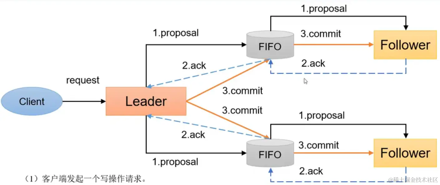 - Leader 服务器为每个 Follower 服务器分配一个单独的队列,然后将需要广播的 Proposal 依次放到队列中去,并且根据 FIFO 策略进行消息发送。