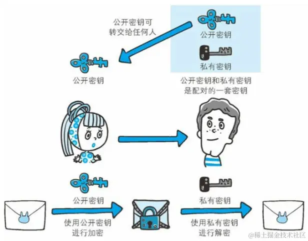 非对称加密:秘钥可分为公钥和私钥,公钥和秘钥是配对的 公钥用来加密,可以随意发送 私钥用来解密,不可分享出去
