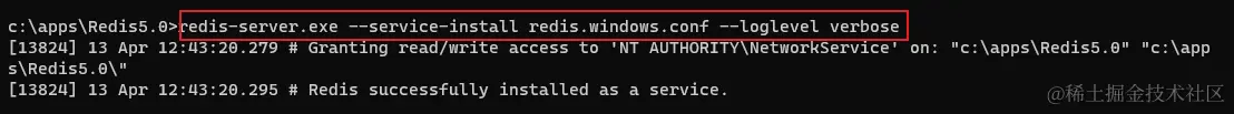 注册服务:redis-server.exe --service-install redis.windows.conf --loglevel verbose