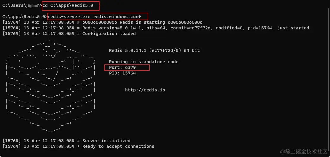 - 启动redis,进入windows命令行,cd到安装路径,然后如下图:
