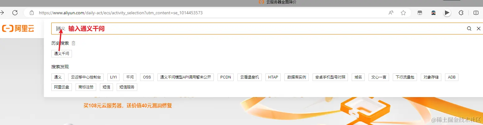 首先,得找到通义千问在哪里,直接在阿里云官网主页:
