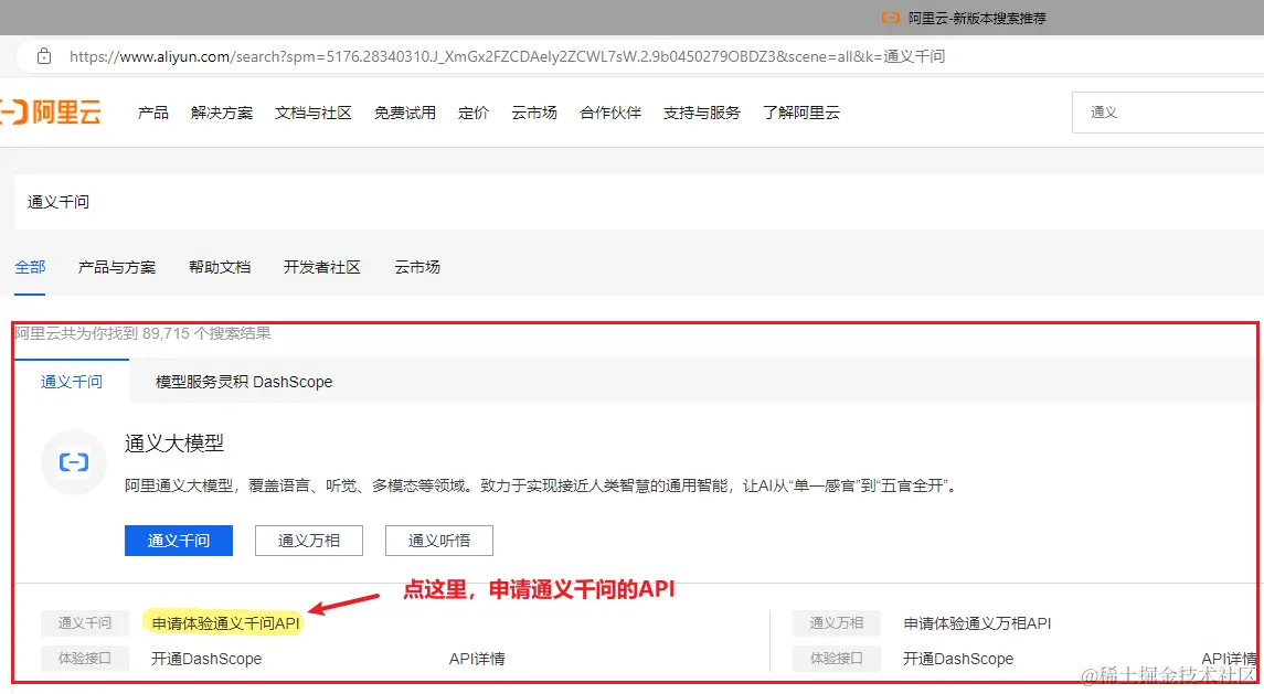 点击申请通义千问API: