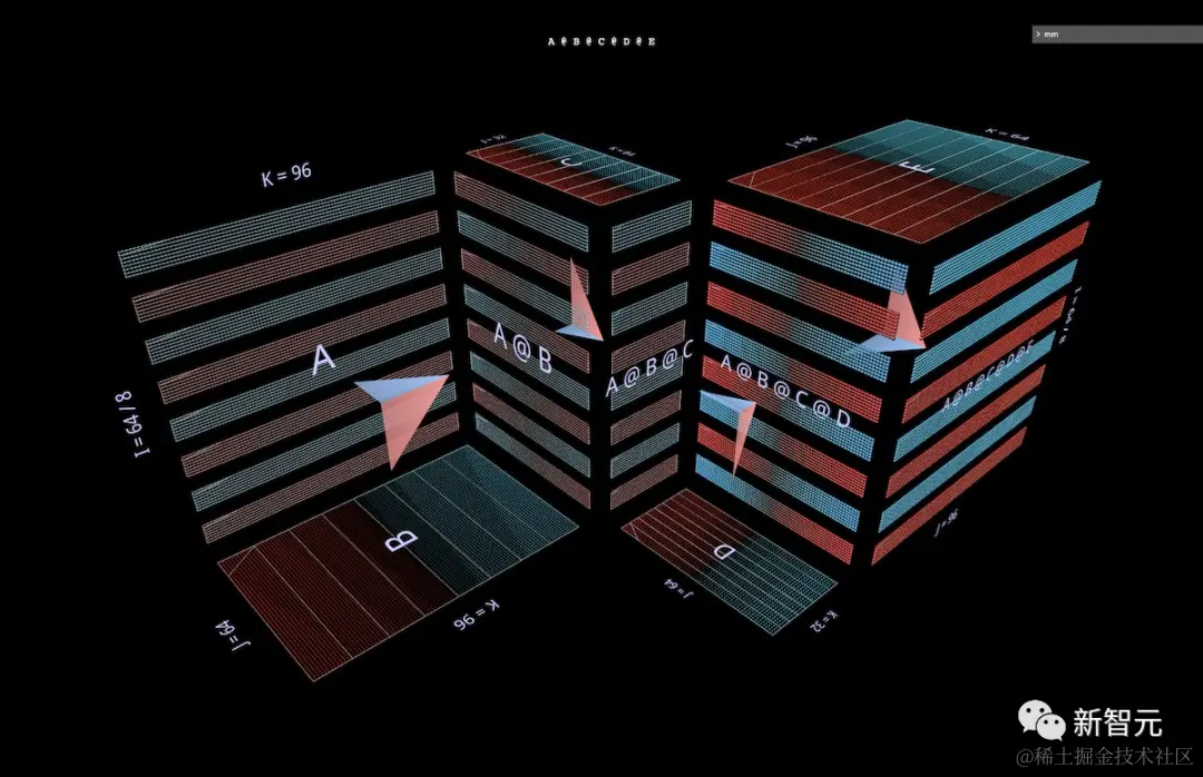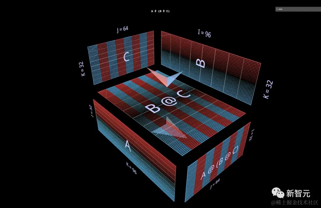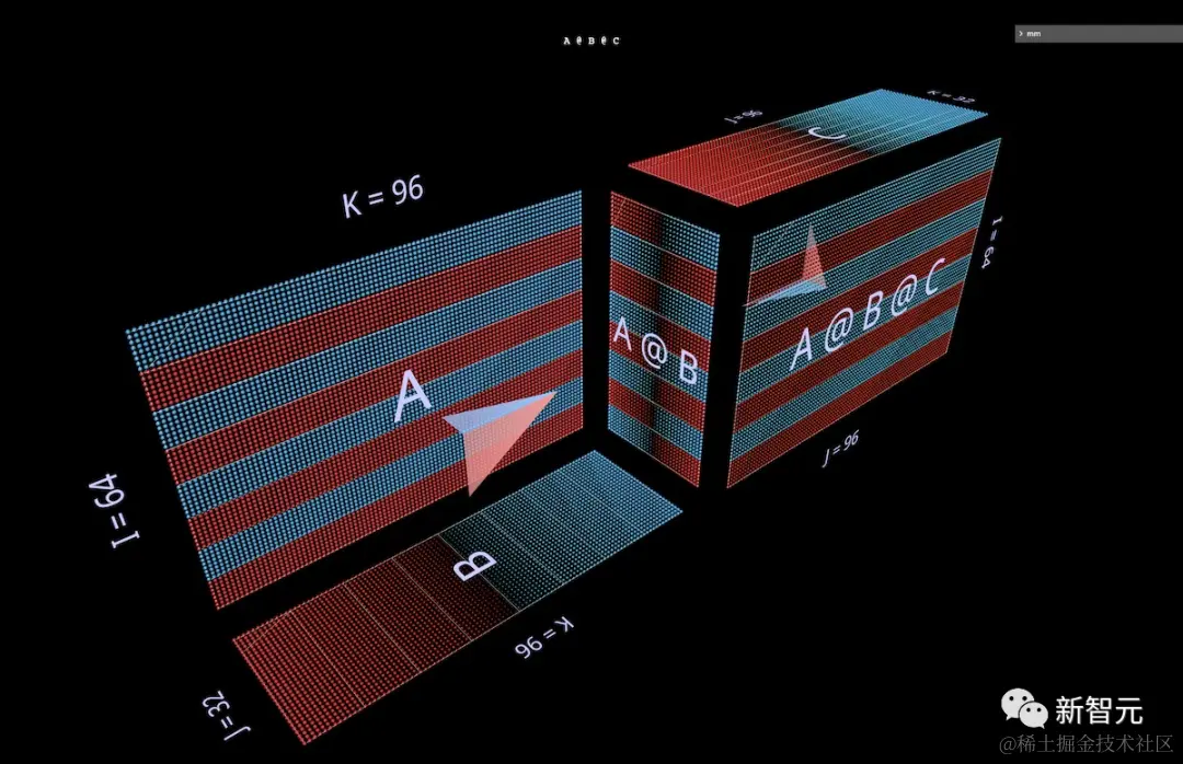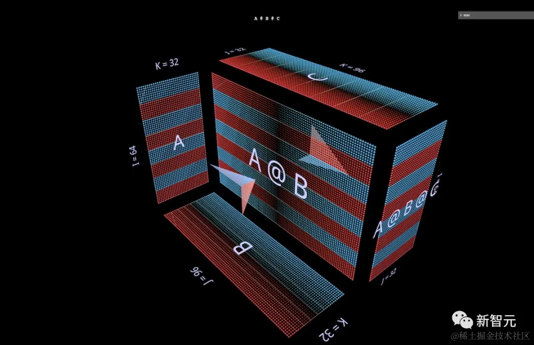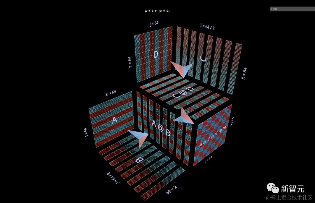 mm的可视化方法基于这样一个前提,即矩阵乘法从根本上说,是一种三维运算。