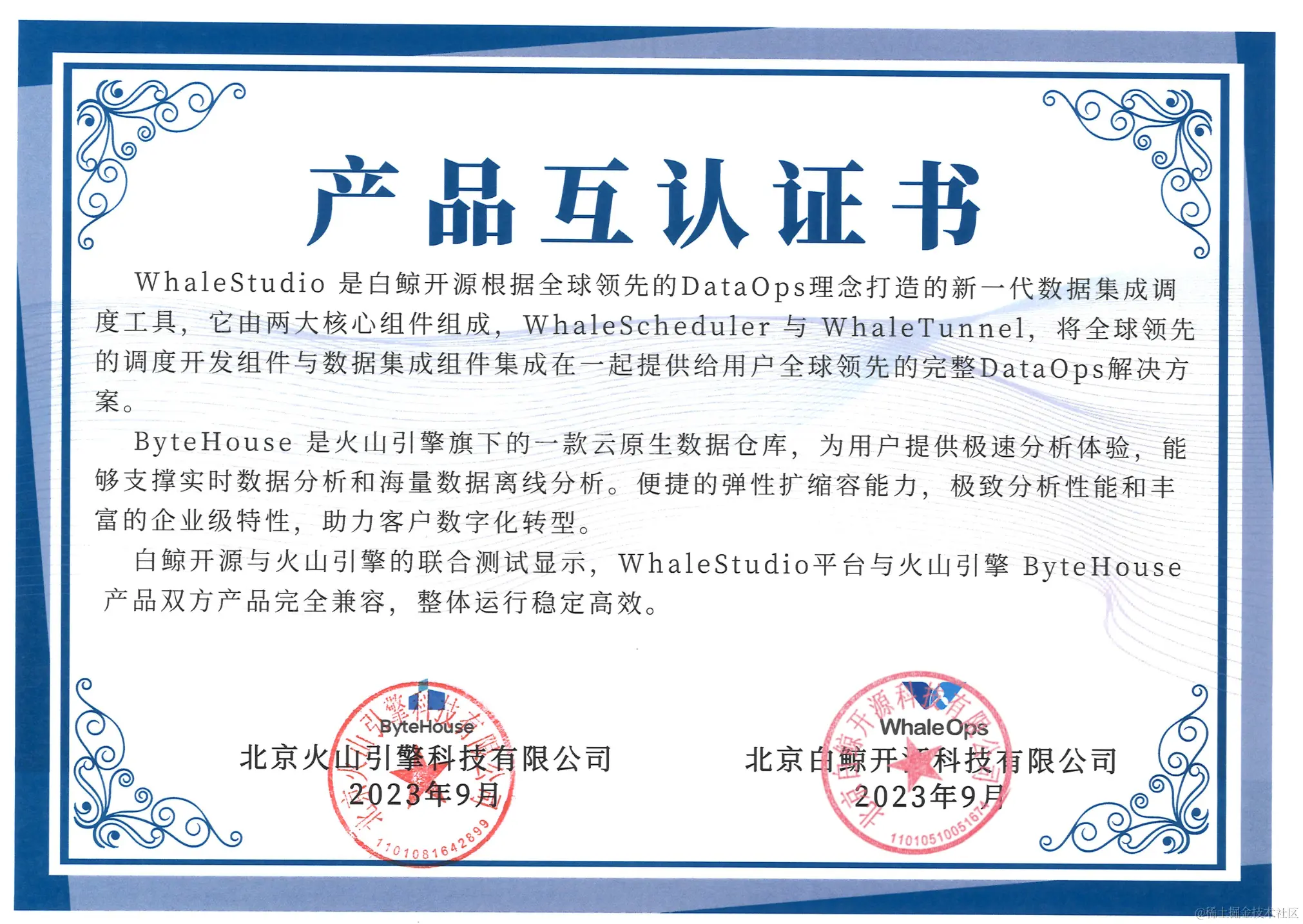 在数字化转型的大背景之下,火山引擎 ByteHouse 与白鲸开源旗下 WhaleStudio 依托于双方完善的产品能力和互补的优势,于近日完成产品兼容性测试。测试结果表明双方产品完全兼容,整体运行稳定高效。此次产品互认将促进双方深入合作,为用户带来一站式、扩展性强、接入便捷的联合数据解决方案。