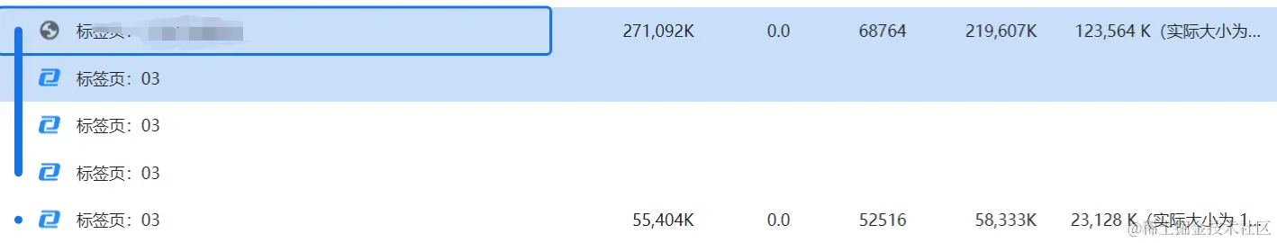 所以即使关闭了这些新打开的tag,只要父级tag不关闭,内存其实不会被释放掉的;