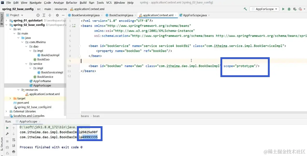 为了造 非单例的bean ,需要配置applicationContext.xml