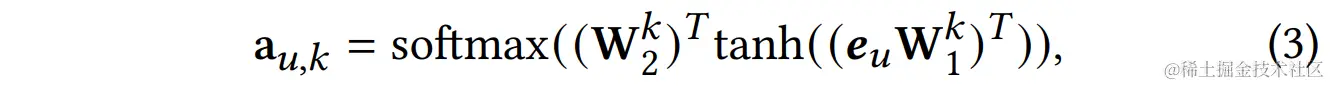 - 行为依赖。由于不同行为间的关联对于每个用户又是不一样的,那么如何捕捉行为间的关联呢?答案是self-attention。每个节点在每个动作k上有一个表示,那么每个节点构成一个Kxd的表示。再通过每个动作独享的和,经过softmax后转化成动作的聚合系数,再乘上得到节点的最终表示。