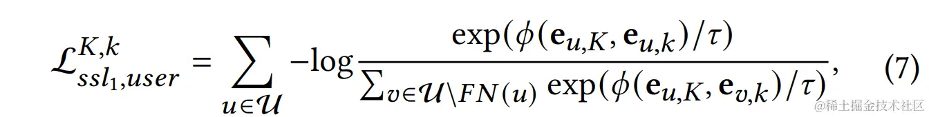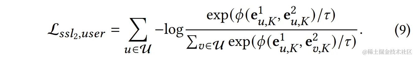 - 分用户节点和候选节点,分别得到和,汇总后得到最终的行为内自监督损失函数