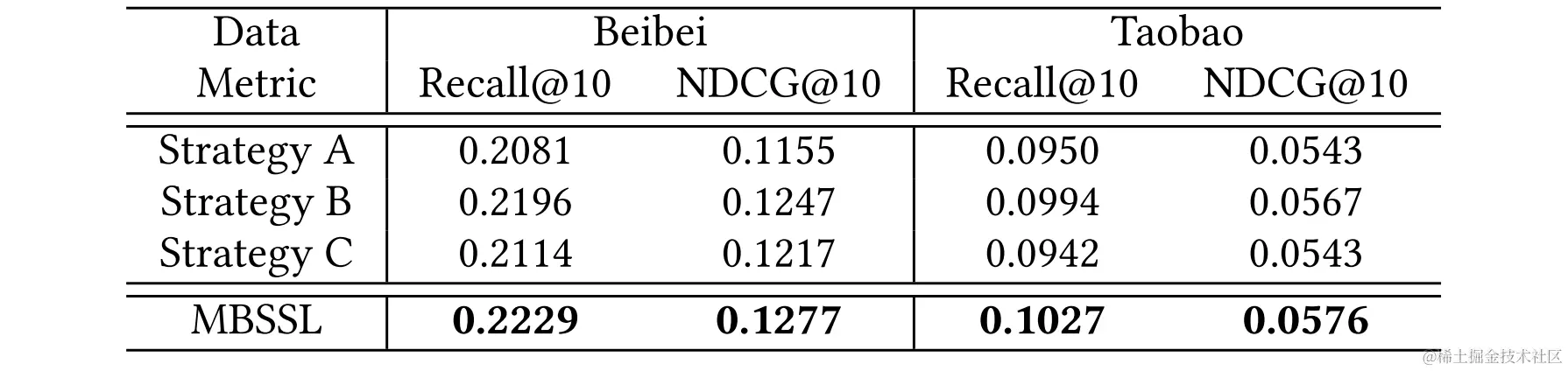 - 负例逃逸Top-N:影响行为间自监督损失函数。